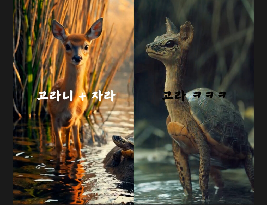 광고업계 전문가들도 활용하고 있지만 그와 대비하여 일반인 사이에 B급 영상의 AI 조합 릴스가 인기라고 해요.