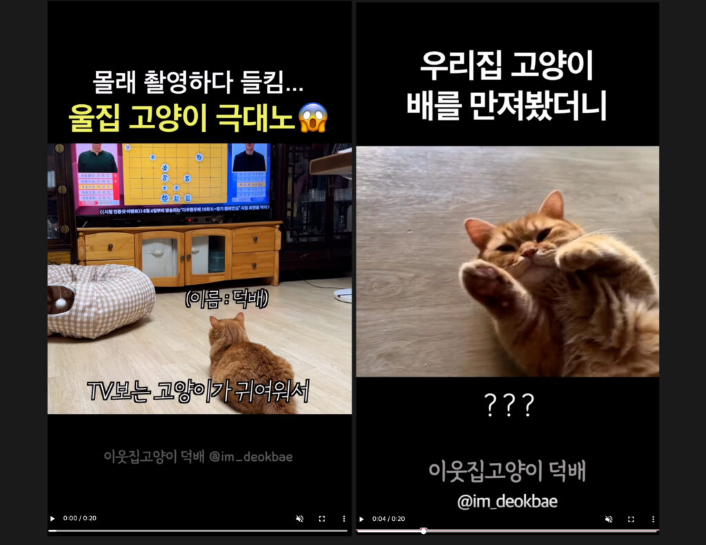 그렇다보니 그럴듯한 콘텐츠 소재가 없더라도 동물이 주인공이 된 릴스는 꾸준히 바이럴되고 인기가 많다고 해요.